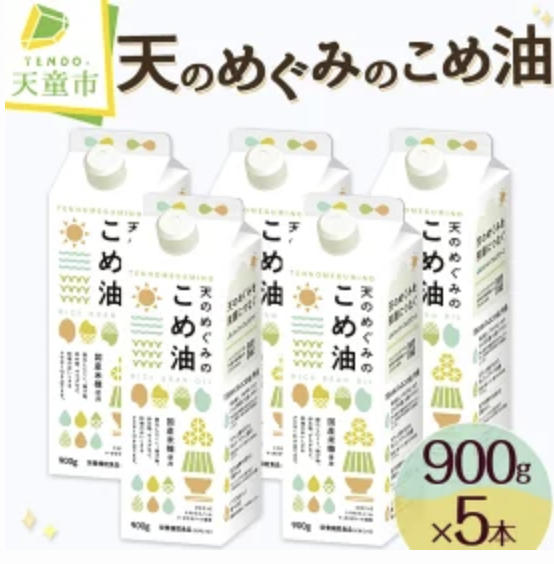 - 【第2位】還元率34.5% 天のめぐみのこめ油 900g × 5本 山形県天童市